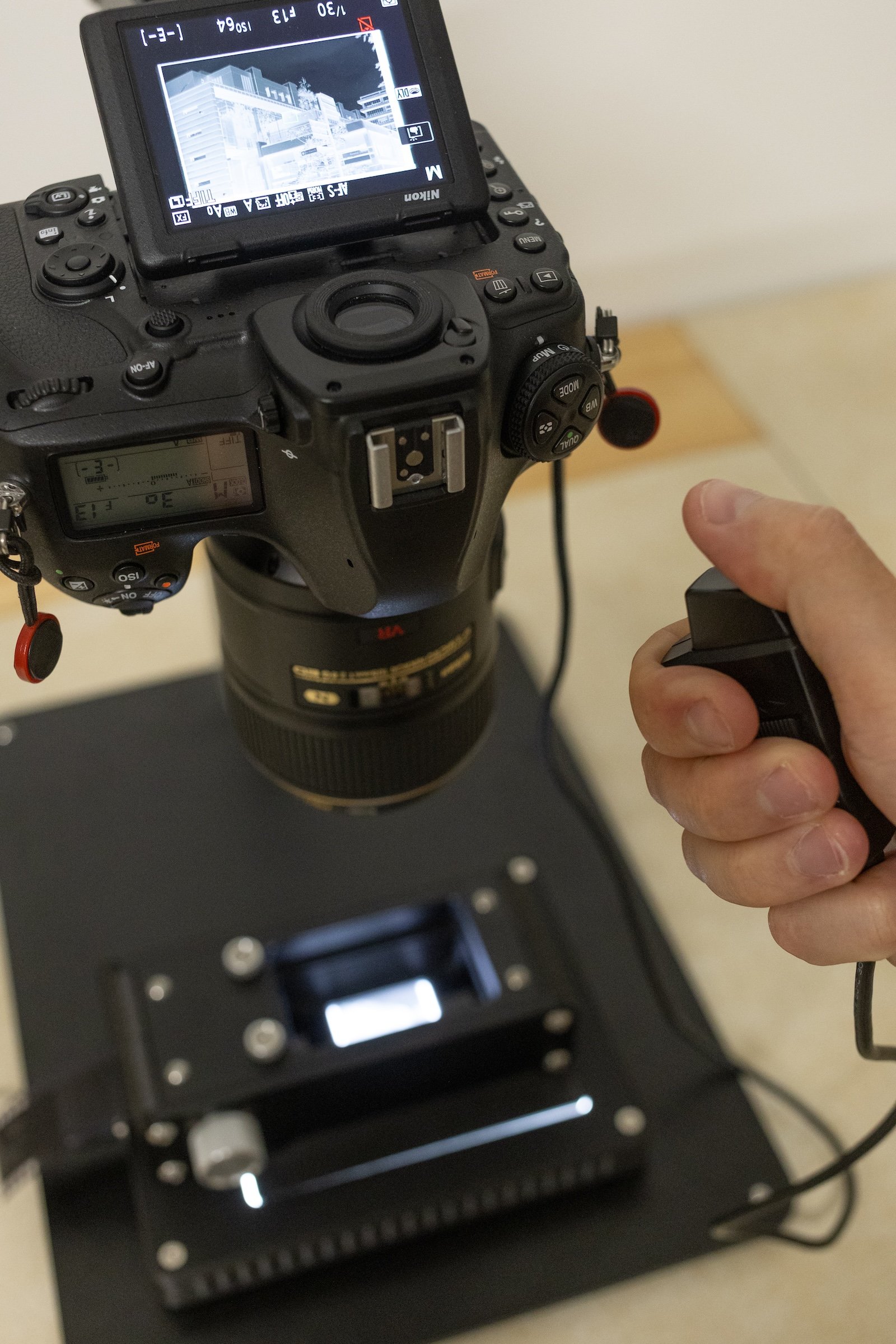 Scan colour and black & white film negatives with our in-house Nikon DSLR and copy stand.